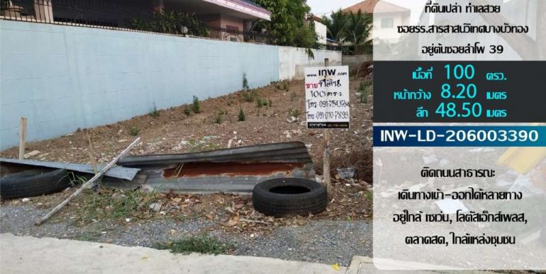 ขายที่ดินเปล่า ! เนื้อที่ 100 ตารางวา หน้ากว้าง 8.20 เมตร ลึก48.50เมตร