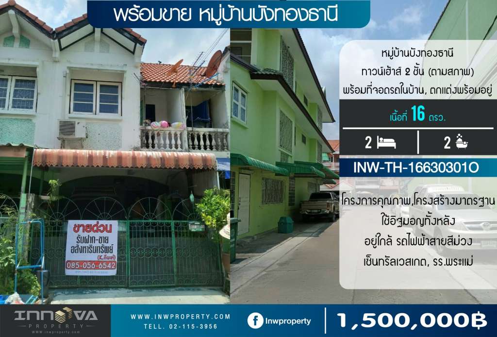 พร้อมขายหมู่บ้านบัวทองธานี ต.บางบัวทอง อ.บางบัวทอง จ.นนทบุรี พื้นที่ 16ตรว.